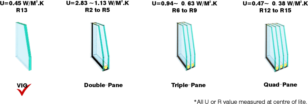 Vacuum insultion is a proven technic to block heat convection and conduction, such as thermos bottles. VIG is made by sealing two pieces glass together with a vacuum layer in between.